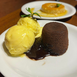 Já no jantar, o cardápio ganha ainda mais robustez. As entradas seguem as mesmas do almoço, mas os pratos principais apostam em sabores fortes: a picanha ao chimichurri, acompanhada de arroz do churrasqueiro e batata palha, ou o camarão no espeto, servido com arroz cremoso com bacon e batata palha. A sobremesa mantém a dupla que conquista todos os paladares: pudim ou petit gateau.